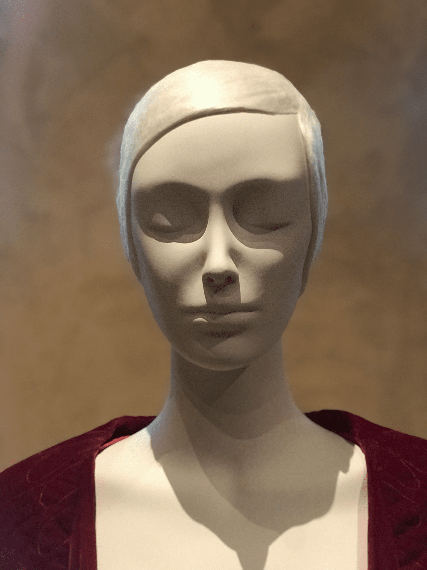 - Conversation with Andrew Bolton at the Met Cloisters, May 31, 2018. The mannequins were custom-made by the company Proportion. See also Laird Borelli-Persson, “Among the Heavenly Bodies on Display at the Costume Institute’s Upcoming Show Will Be Custom-Made Mannequins,” Vogue, May 4, 2018, at https://www.vogue.com/article/met-gala-custom-mannequins, as of July 16, 2018. Each mannequin also has a custom-designed wig made by Shay Ashual; the styles vary from the evocation of a demure monastic tonsure to fire-red dramatic crops. Their hair is also effective in conveying and intensifying a particular mood from gallery to gallery. ↩